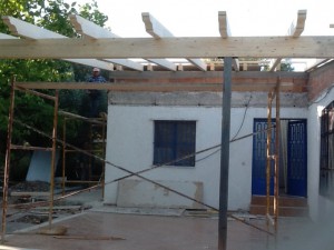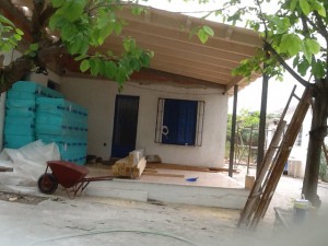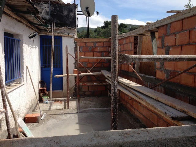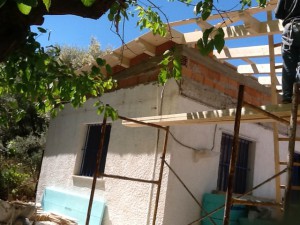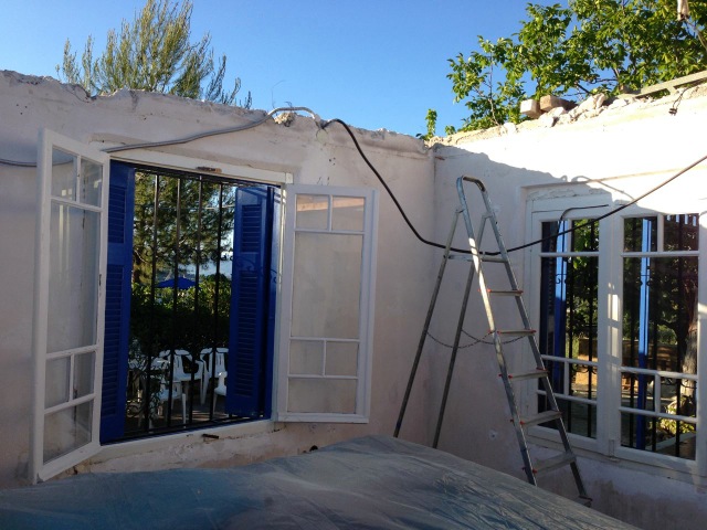 Er is deze zomer veel geklust aan Nikos Cottage om uw verblijf zo aangenaam mogelijk te maken. Hieronder vindt u foto's die gemaakt zijn tijdens de verbouwing. Alle binnenmuren zijn opnieuw gestuct en geverfd en er zijn nieuwe kozijnen en deuren geplaast. Ook is het dak compleet vernieuwd en is overal dubbel glas geplaatst.